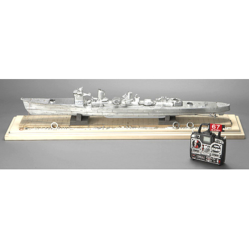 3年前からオールアルミ製で、水を切り全力走航できる駆逐艦のスケールモデルをつくり始めました。ラジコン操作で、水上を前進・後進・左右の旋回することができ、スピードコントロールも無段変速が可能です。メンテナンスをしやすくするために、船体を上下に分割して開けられるようにしています。私はこれを「茶筒方式」と名付けました。