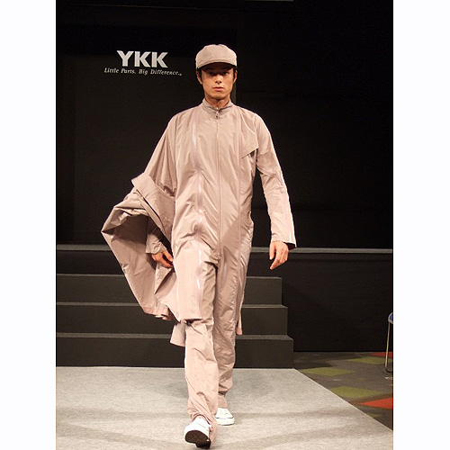 つなぎにポンチョをファスナーで繋ぎ合わせることで合羽にもなる。撥水生地と“アクアガード”を使用した、雨の中でも働きやすいワークウェアです。