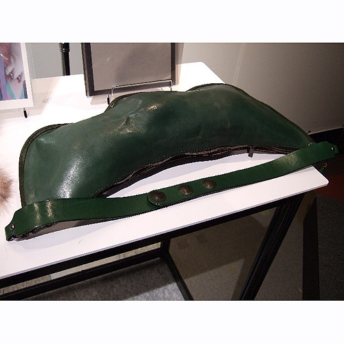そら豆をモチーフにデザインされたボディバッグです。“ルミナ”でそら豆のすじを表現し、その中には豆の形のポーチが入っています。