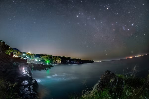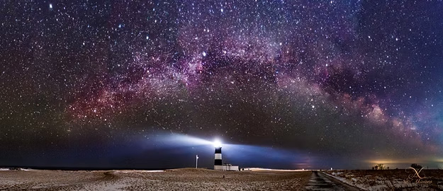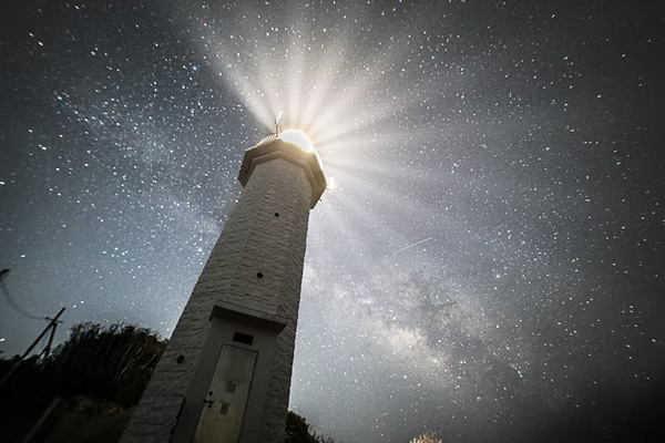 普通は、灯台の光で天の川がかき消されるのではないかと考えることに挑戦している。