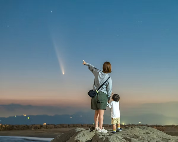- 何よりも構図がキレイ。2024年の天体ショー「アトラス彗星」と「宇宙観測所」をうまく絡めている。