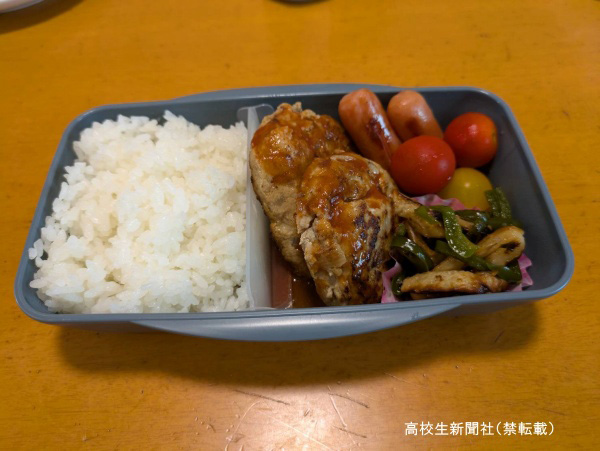 このお弁当は、夏休みの家庭科の課題で作ったのですが、取り組んでみて、調理の手順と準備が足りなかったと感じました。いつも早起きしてお弁当を作ってくれるお母さんに感謝を伝えたいです。