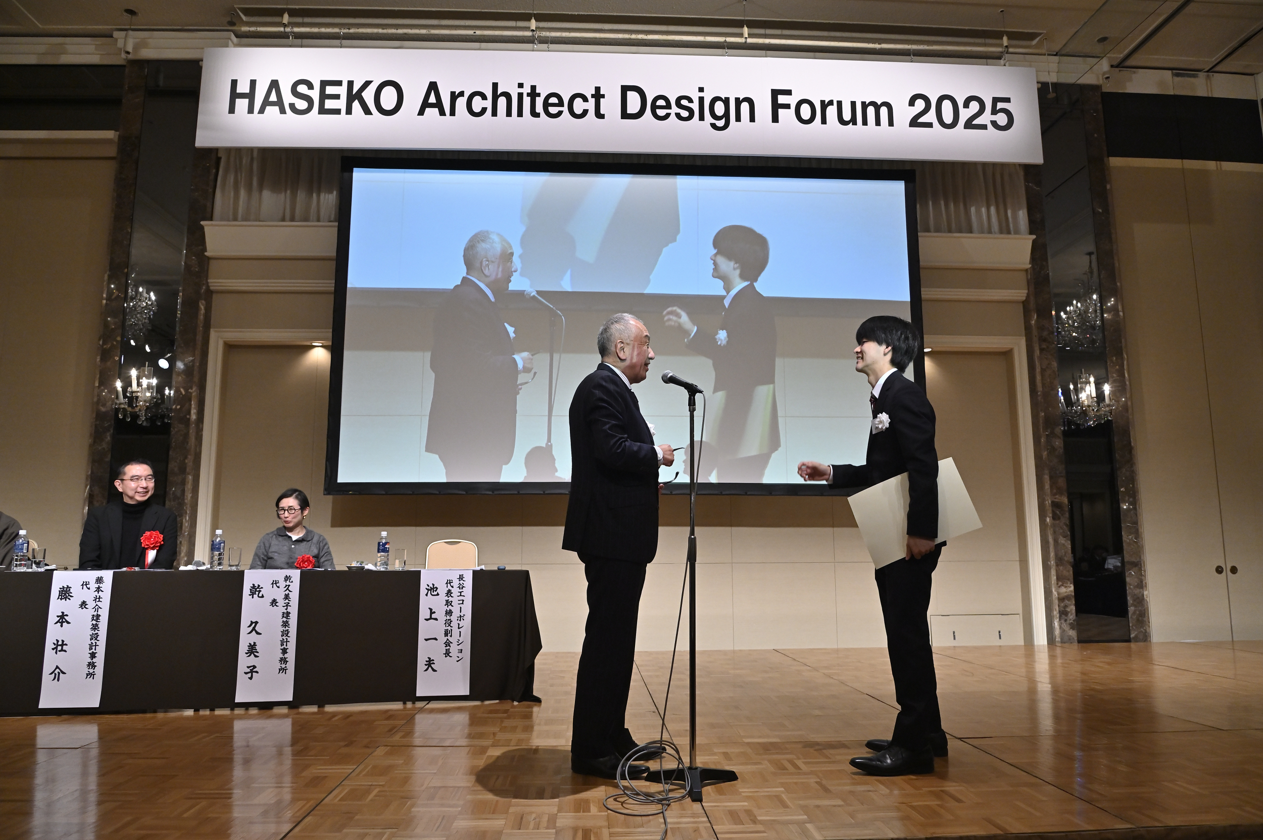 長谷工コーポレーションの池上副会長は、「現在多くの人々が核家族や血縁のつながりで暮らしているのが集合住宅ですが、それを“集落”という定義に落とし込んだときに、果たしてどんな楽しみや幸せな暮らしが待っているのかと、ワクワクしながら今日のプレゼンテーションを聞いていました」と感想を述べた。冒頭の挨拶では、「建築の中でいちばん大切で難しいのは住宅です。住宅は人がいちばん長く暮らす場所であり、人の命を守る器だからです」と話していたのが印象的だった。